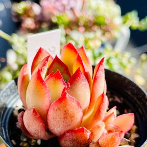 【ベンケイソウ科 エケベリア属】春秋型 クリスマス🎄です。クリスマスイブとよく似ています。赤色が濃くなり、全体的にキュッと立ち上がってきました😊