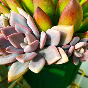 初めてネットで多肉をポチ狩り。 写真通りの立派な子が届きました💕 プレゼント🎁で七福美尼頂きましたよ。 一番メインで欲しかったのは玉椿なのですが、箱の📦中でポットがギュッと潰れて苗が浮いてしまってました。すぐに植え替えしたので大丈夫だと良いのですが。お花が咲いていて可愛いです。少し甘い香りががしますよ。 ラウリンゼはすごく立派です。こんなに立派な多肉は初めてです。✨ クリスマス🎄は季節なので😊。花芽が上がってきています。 淡雪は、朧月✖️アメジスチヌム ということで購入。アメジスチヌムいつか欲しいと思ってますが、まずは、強健な朧月の遺伝子が入っている子をお迎えしました。
