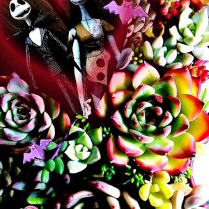 🖤 Happy Halloween 🖤 🏷ダークハロウィン 🏷ハロウィン月間 🏷みんなでハロウィン 1⃣ナイトメアービフォアクリスマスクリスマスのジャック💀&サリー💖 うちの庭のグリーンアイスをプレゼントの花束💐に提供 サリーに上手く告白できるかな💌 2️⃣先日さくら餅子さん🌸が七宝樹が怪しい感じと💬 モノクロで怪しさup🎶 3️⃣先日訪れた「そらのひろば ステラ9」のHalloween イルミネーション✨ 4️⃣サンスベリアの子株を頭にびっしりと植えた🎃ともりもりのバニーカクタス鉢がシンデレラフィットの大きな🎃 45さんに頂いた可愛いかぼちゃ🎃容器にはこれまた45さんに頂いたオレンジ🧡色の多肉をIN(オレンジに見えませんね💦) 双頭になってます(* 'ᵕ' )☆ 5️⃣庭で撮影📷´- 今日は穏やかな天気 深夜の豪雨☔でも庭の花たちは元気❣️ 多肉やハボタンリースは念の為玄関フードに避難しましたが残り少ない秋の日差しを当てるため出しました🍁 この出し入れ作業もあと何日かな❔