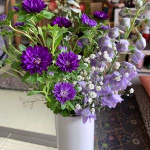 ビンに入りきらなくて、ミニ花瓶にも入れて、花手水も出来て ヒメアスターお花たくさんで色々飾れて嬉しいです!!🫶