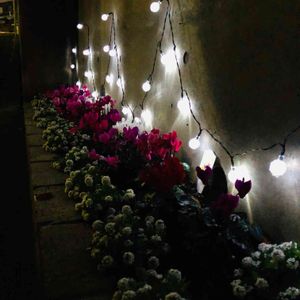 花壇にソーラーライトを点けています。 日暮れが早いこの時期でも、帰宅時に花を楽しむための工夫です。