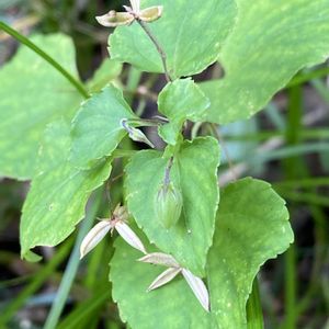 7月22日 撮影 職場の庭 タチツボスミレ(立坪菫)スミレ科スミレ属 実は、この写真の中央にあるぷっくりとしたものをスミレの閉鎖花だとずっと思っていました。 ところが、ある方から、「これは実です」と教えていただきまして。 普通に花が咲いたあとも閉鎖花のあとも、種ができて膨らんでいる実で、花ではないと知ったのでした。 それからはスミレを見るたびに覗き込んで閉鎖花を探す日々でした😆 あるとき、庭の草取りでドクダミを抜こうとしていたときに(個人的にはドクダミは好きなのですが、職場では抜いてねと言われるので…) これは花が終わって背丈が高くなったスミレじゃないか!と気が付き、葉の奥を見たところ、閉鎖花を見つけました!! 先が細く尖った状態のものが閉鎖花のようです。 ちょっと目から鱗状態でした。 ずっとずっと思い込んでいたので、表現してみて「違うよ」と指摘されて良かったと思いました😆 (それにしてもタグの場所は相変わらず思っているところに付きませんね😆)