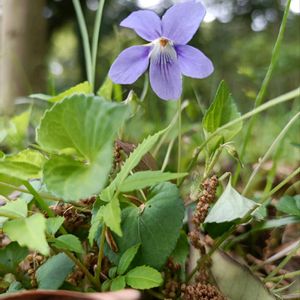 ◆タチツボスミレ(立坪菫)◆ 一特徵一 ・葉は心形のハート形 ・花は左右相称花、基部に後ろに突き出た細い距 ・花はほぼ同じ方向を向いて咲く ・茎が立ち上がる托葉は櫛の歯状に深く裂ける 久しぶりのスミレちゃん💜 2025.GW 実家近くにて📱