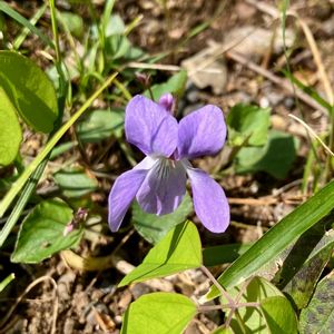 タチツボスミレです 子供の頃からスミレが大好きでした😊 小学生の時、雑木林で見つけたスミレを庭に 移植して咲かせるのを楽しみにしていました😉 5種類ほど育ててましたがタチツボスミレが 爆発的に増殖し、庭じゅう薄紫になったのが春の思い出です🤣