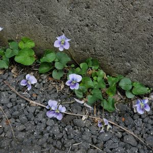 道端。土あるの?な環境で色々なスミレが咲いています。