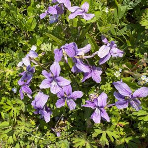 おはようございます🌤️ 昨日の丘陵地 タチツボスミレが色々なお顔 しています。 1️⃣美人さんのお花 2️⃣3️⃣この子達も ちょっと個性的なお顔です。 他にも薄い色のものなど 個性的です。 4️⃣はセリバヒエンソウ 外来種、葉はセリの様で、 花は燕が飛んでいる様な形で この名前みたいです。