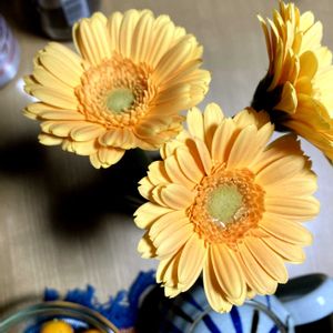 ガーベラ⭐︎❇︎ 元気になる色❣️ ①娘がキッチンに飾った😊! ②キラリ✴︎✴︎雫💧👀! ③ズーム🤳✴︎パシヤリ🤩自己満