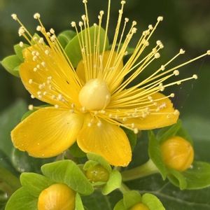 今日のお花✨ヒペリカム✨ ①5月26日の時の花です ②今は剪定してこんなになっちゃってます😅 ③④⑤昨日までは天気が悪くてずっと蕾のままでしたが今日は見事なほどきれいに咲いてます🥰🥰🥰 今日はちょっと離れた畑の南側に花の種を蒔いてきました(ルピナス・オルレアホワイトレースフラワー・ピンクのかすみ草) 遅かったので来春ちゃんと咲けるかなぁ
