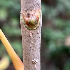 1️⃣仮頂芽・葉痕 2023.11/23 冬芽、側芽 2️⃣葉痕 " 3️⃣葉痕 2024.1.9 4️⃣葉 2023.11.23 2️⃣と3️⃣では微妙に毛が濃くなっているように見えます ※カキノキ科カキノキ属 東アジア原産 日本では北海道以外で広く栽培されている 冬芽は丸みのある三角形で短毛がある 枝の先端に仮頂芽その下には側芽が付き芽鱗が4〜5枚ある 葉痕は半円形で維管束痕1個