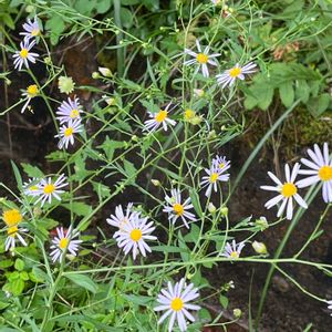 🏷️今更ですが② 9/23撮影 秋になるとこの弱々しい野菊が好きで毎年楽しみにしています ※キク科シオン属 本州の近畿地方以北の山野に分布 葉は互生し薄く、披針形から卵状楕円形 縁は浅く裂けるが羽状に中裂もある 葉形の変化も多い 花期7〜10月 淡紫色から白色で筒状花は黄色 花弁も変化が多く、冠毛はほとんどない