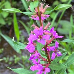 🏷️今更ですが ⑥ 9/23日撮影 *ミソハギ科ミソハギ属 北海道から九州の湿地や田の畦に生える 茎は直立断面は四角 葉は対生広披針形、茎を抱かない 花期 お盆の頃に紅紫色の6弁の小さい花を先端の葉腋に多数付ける お花も終盤なのか? 草刈りされて一輪しか咲いていませんでした
