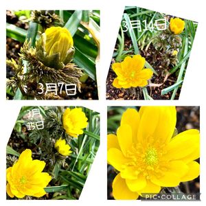 強風の一日でした💦 私も飛ばされそうな💦 気温が上がって強い風に吹かれながらも日中は、咲いていた福寿草💛 まぶしいくらいの色は、まだ、冬の終わらない北国の庭では、キラキラと輝いています✨️ 一番早いクリスマスローズの次に咲いてくれました💛
