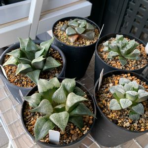 ハオルチア…レンズタイプ? 朝陽、夕陽🌇に照らされると✨✨✨透けて見える子も素敵✨ でも私が一番好きな子は❤️ 一番奥にいる ミラーボール🪩さん。 光る訳でもなく輝くでもなく、ただそこにいるだけなんだけど好きなんだよね〜👍