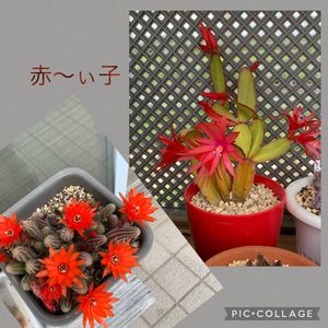 おはようございます☁️ 今朝はジメジメに雨プラス➕☂️ そんな中、見〜つけた。 蕾は見つけていたけど咲いたのね✨✨💖 シャコバサボテンの赤 北海道のNさんから✈️ 白檀の赤 お隣長井の織ちゃんから🚗 やって来ました〜。 シャコバさんは2年目で満開💖 白檀さんは何年になるかな〜毎年毎年見せてくれますよ〜✌️ ありがとうございます😊