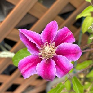 テッセン・・・ クレマチス・・・ 今年はたくさんの花を付けてくれました🌸 そして、まだまだ蕾も持ってます👍 この子は昔勤めていた会社の社長が突然亡くなり、その時のたくさんの花輪を準備してくれた花屋さんからのお礼の花と会社に来た子です 奥様は眺めているの辛いようで貰ってあげてと言われて我家に来た子です🌸 もう、23年になります。 丈夫ですね〜💪 そろそろ植え替えせねば☺️ だんだんと花の大きさが小さくなってしまってる(^~^;)