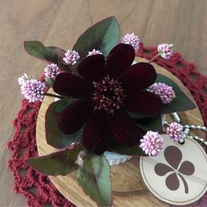 チョコレートコスモスとポリゴナムの葉っぱの雰囲気がぴったり✨ なんか魔女っぽいイメージ?! ポリゴナムをはじめて切り花にしてみたけど、長く楽しめそう♪ Green Snapオリジナルチャームと一緒に📷✨ ステキな輪が広がりますように♡