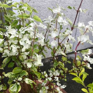 8月にピンクのガーベラと寄せたアルテルナンテラ。 2種類のアルテルナンテラを植えていますが、こちらは上に伸びて新葉が白くなるタイプ。 どんどん伸びるので✂️してたら白い葉っぱが少しずつ増えてきました😊 このコも冬越しに挑戦するぞー😆