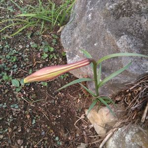 おはようございます。 びっくりしました。 10センチほどて もう ツポミをふくらませたタカサゴユリです。 ちゃんと咲けるのかしら。 がんばれ〰️。
