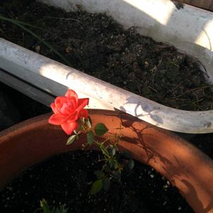 朝日に 眩しそう。 とっても可愛い ミニバラよ。 挿し芽・育ってくれました。嬉しい朝。