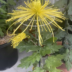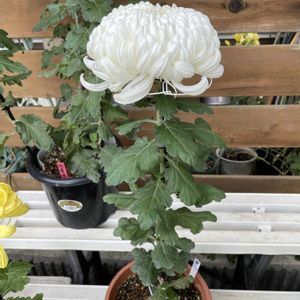 輪台付と計測 3枚目は先生の作品2つと、私の黄色の菊を合わせて、3本で飾ろうという魂胆。 いただいた菊も、1回でも水遣りしたら、自分が育てたことになるそうです。😛 4枚目は菊の会の人の作品です