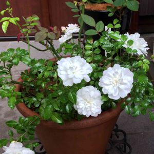 初夏に挿し木のミニバラさん、 もう咲いてきました。 親株は花壇ですが、雨に弱いので、この子は鉢植えにしました😊 グリーンアイスより、花持ちが悪いですが、白さが際立ってステキです♡︎ᵎᵎᵎ♡̷︎♡⃜︎♡⃡︎