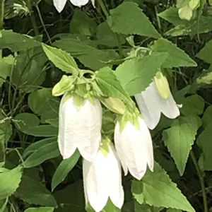 今日のお花、ホタルブクロ! お隣りさんの庭先に、真っ白な ホタルブクロのお花が咲いてました✨✨ このお花に蛍をいれて、 蛍の光が見れたら綺麗だろうなぁ🎶💕✨✨😍