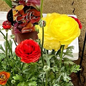 こんばんは✨ 黄色と赤色のラナンキュラスが可愛いですよ❤️💛🌿 蕾がたくさんです💞