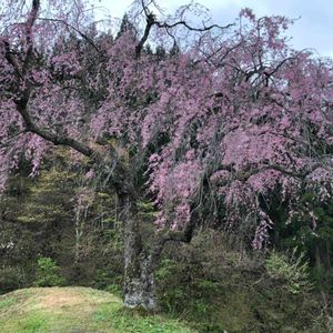 こんにちは✨ 今日は薄曇りです🌤️友達とドライブへ 🍀💚山間の枝垂れ桜が凄く綺麗です🌸🌸🌸🌸🌸 今年は観れたよ〜🌸🎶🌸🎶