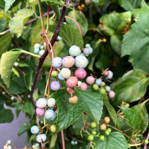 この丸い実がついたのは何でしょうか? 「ノブドウ」と教えていただきました。 ありがとうございます😊