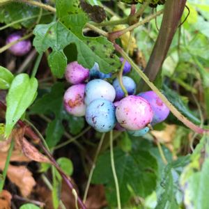 ノブドウを部屋に飾りたいけど、水揚げが悪くてすぐ枯れてしまいます😅 毎年同じ場所で実をつけるノブドウ💜 今年も会えたね(⸝ᵕᴗᵕ⸝⸝)