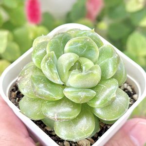 【多肉ランド コントレイル】 『MOMO』ありますか?と聞いたら… 残念ながら今回は無いそうです^^; (MOMO目当てで行ったのに残念) リエール ユカさんにお話しして来ましたが『ハートエンジェル』の札でトップシーダービーみたいなのが去年の日比谷公園でも販売していたけど…『ハートエンジェル』ってぷっくらしたハート葉で…と写真を見せて説明しました。 どうやら間違えて販売していたようです^^; 店頭から3つ見付けてユカさんにコレですよ。と渡してあげました。 メルカリなど偽の『ハートエンジェル』として流通している1つとして ❶『飛行少年』これですね^^; コントレイルさんとも、お話しして来ましたが、この子の片親はどうやらトップシーダービーみたいな方の交配種らしいです。 『キュービックフロスティ』交配じゃないかな〜って。 納得(´ー`*)ウンウン 気になった多肉❷『グリーンダイヤモンド』 『ライラジェニー』に似ているけど別品種らしい。 気になった多肉❸『青水鬼』 『水密桃/桃太郎』交配かな? 【リエールサキュレント】 気になった多肉❹『コロラータブルーミング』 初めて見たけど…交配種かな? 結局お迎えしたのは❺『アイボリー錦』でした。