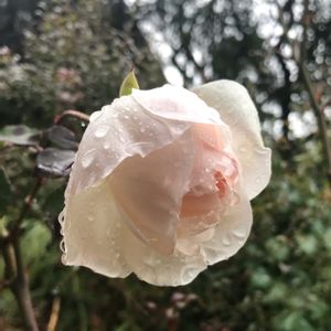もう咲かないと思っていたレッチフィールドエンジェルにお花が咲いていました。 いつもの事ですが、バラ仕事も押してます💦 この冬は寒いと聞いていましたが、暖かですね。 そのくせ朝・晩は寒いので、カラカラの鉢に水を撒くタイミングが悩みどころでしたが、昨夜から降った雨が恵みの雨となりました。 雨が上がりに庭に出てバラをカットしました。