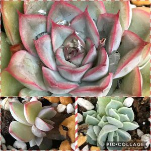 画像縦になっちゃった😂 一昨日ジョイフルAKで狩ったこの子たち お名前なかったのでわからず( •᷄⌓•᷅ ) 調べてみてもエケ系は似てるものが多くて( ˙-˙ )・・・ ご意見お願いします! 淡いパープル色が可愛い子は花芽が4つも! 赤いエッジが可愛い子も素敵o(●´ω`●)o♪*,。
