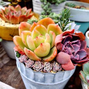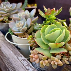 こんばんは☆ 去年の6月に寄せ植えした 室内避難中の子たち✨ 大雪続きで徒長してきた子がチラホラ…😭 1個ダメになった子がいたので 今日GETしたハチワレ君を置いてみました💕