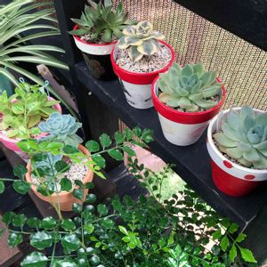 赤いエッジが魅力的なアプス❤︎ 優しい色合いでほのぼの〜(*˘︶˘*).。.:*♡ 昨日は☔️良く降りました😢 今日は晴れてる〜୧(ᕯ˙ᗨ˙ᕯ)୨ 多肉ごと・ガーデニングできるね❣️
