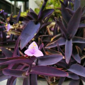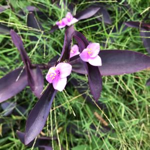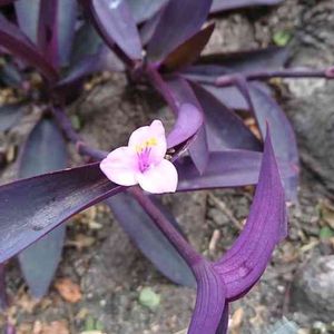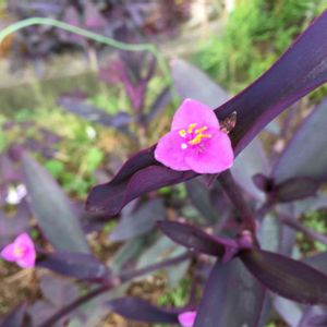 新松田駅 ムラサキゴテン(紫御殿)(パープルハート、セトクレアセア) 、ツユクサ科ムラサキツユクサ属の常緑性多年草、園芸品種、要注意外来生物 🌼新芽が柔らかなものが食用とされ易い野草の中にあって、セリやスベリヒユのように全草が食べられる