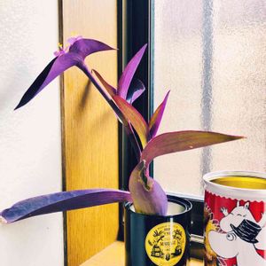 庭に咲いていた、「ムラサキゴテン」 ちょこっと道路に飛び出していたので つんで 紅茶の缶に入れてみました。 別名「パープルハート」 「セトクレアセア」 ムーミンのクッキーの缶は いつ使おうかなぁ