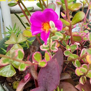 2021.8.14 降ったり止んだり [ポーチュラカ&ムラサキゴテン] お花はモチロン。葉っぱ🌱も色付いて可愛い~ポーチュラカ。