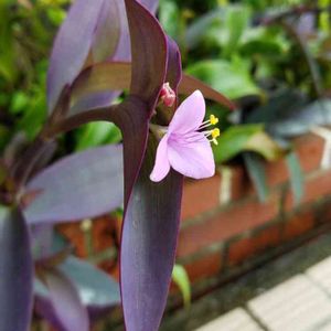 ムラサキゴテン 別名 セトクレアセア ツユクサ科 ムラサキツユクサ属 8月に花が咲いているのを水に挿して、ずっと室内(蛍光灯下)に。 勿論水替えし、発根して、いつの間にか花は終わり、葉や茎が次第に緑になりました。紫色が退いていったのです。 そして今日、ふと、水替えの時、小さな花が開きかけているのに気付きました😊 色は薄いけれど、形も少し違う(花弁の数も違う)けれど、お久しぶり!! 何か良い知らせかも、、、と思った次第です😊