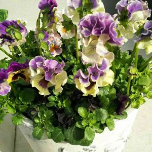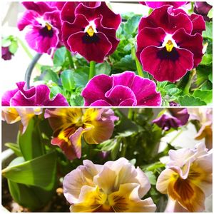 こんにちは😃🎶 何度もupしているビオラの寄せ植え🌼🌸🌿 右側の黄色のビオラが11月の植え付け時に切り戻して、なかなか咲かなかったミルフル💦 ようやく咲き出してくれました😅 黄色だったのにワインレッドが入った子になって、美味しそうに見えるのか? 鳥🐦さんに摘まれているみたい🌸💦😓