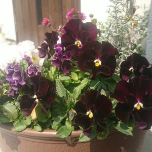 日曜日、天気もよく小春日和で暖かかった~💓 ほんと、どの花見てもきれいだな~♪✨この深い赤色?エンジ色?いや、ワインレッド🍷のビオラもいい❤️ これで素敵が伝わる~(笑)😁 色名の突っ込みをいただき、少し修正(ᵔᗜᵔ*)