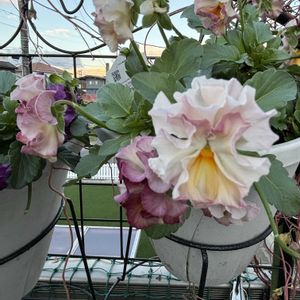 おはようございます😃 昨シーズン リングバスケットに植えていたハボタンが、1株だけ夏越しできました🙌 そして 涼しくなってから2倍ぐらいの高さになったので 寄せ植えに使ってみましたが バランスが悪い上にセンスのない一鉢になりました😭 ビオラも2週間ほど前にピンチしたのでお花が……咲いてません😰