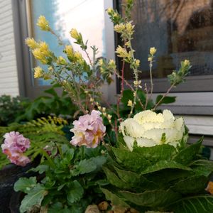 冬のさみしいお庭に彩りを与えてくれて、いつも癒されている寄せ植えです。 ガーデントルコギキョウは本当に買ってよかった! 高さを出してくれて、お花も常に咲いています。 ミルフルはフリルのお花がとってもかわいい。 背景の壁をのぼってる雑草化したプミラと同化してしまい、写真に撮るとわかりづらいのが難点…