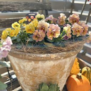 サントリーのミルフルさん💕 今季一番最初にお迎えしたビオラさんなのですが、3か月経ちモリモリになってくれて、満員電車のようにぎゅうぎゅうで狭そうになってしまいました😂 まだ先は長いのにこのままでは、と花友さんにも相談し、植え替えてあげることに ②鉢増しをしてあげたら、もう取った方がよい花柄も見やすくなり、スッキリしました😮💨 このまま春まで楽しめますように🌸