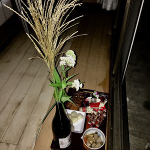 お月様はまだ見えないな🌕 でもお月見泥棒が大勢来て嬉しかった💕 でもひと昔前の半分くらい。 皆さんの地方にもこんな習慣ありますか? 地酒 千駒の一升瓶にススキとヒヨドリソウもいいでしょ✨