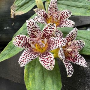 久しぶりにコハクホトトギス(琥珀社草)に出会いました。 コハクホトトギスはジョウロウホトトギス(上臈杜草)とヤマホトトギス(山杜鵑草)との交配種でホトトギスの園芸品種です。 茎は下垂し、花びらに入った琥珀を思わせる斑紋が特徴的で魅力溢れるホトトギスです。 別名、コハクジョウロウホトトギ(琥珀上臈杜草)とも呼ばれています。 『🏷️太陽がくれた季節a』 『🏷️2025年櫻鐵ホトトギスコレクション』