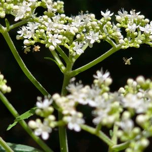 ❀今日のお花 オトコエシ (男郎花) 🌱スイカズラ科 オミナエシ属 ✽白い下向きの毛がある茎が直立して高さ1m前後になる ✽根元からつる状匍匐枝を伸ばす ✽対生する葉は長さ5〜15cm、下部の葉ほど深く羽状に裂ける ✽裂片は長楕円形で鋸歯縁 ✽花は茎頂に多数つき花冠は径約4㎜で、先は5裂し、雄しべは4個、雌しべは1個ある 散歩道にたくさん咲いてます!🍀
