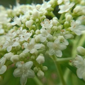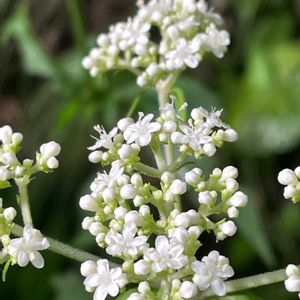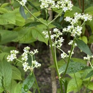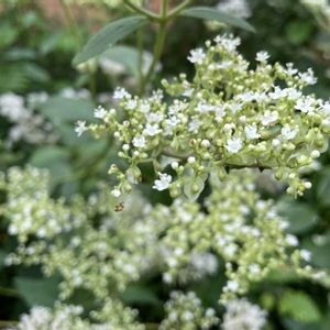 オトコオミナエシ(オトコエシ) オミナエシの白い花版、と思いきや?おおっ!黄色と白が混じってるよお〜♬ オミナエシとの交雑と言われてたけれど、オトコエシ内の変異6倍体だということになっている(,,>᎑<,,)🤍💛 花冠の内部に毛が生えている 木曜モフモフ🏷雄しべは普通4本のところ、2本しか確認できない小花ばかり↖↗ こういう所 変異(^_-) 葉は対生で縁にギザギザ🟢