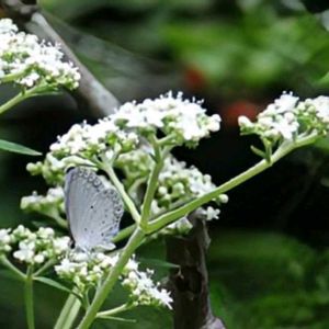 今日のお花 オトコエシ オトコエシ/男郎花 スイカズラ科 オミナエシ属 原産地:在来種 (北海道、本州、四国、九州) :山野草 ・多年草 ・草丈60-100cm ・花期:8-10月 ・茎の上部はほとんど無毛、下部は有毛 ・葉:対生 長さ3-15cm ・上部の葉は分裂しないが、中部以下の葉は羽状に3~5深裂する ・頂部の葉が最も大きく、裂片は卵状長楕円形 ・花:散房状に多数つく ・花冠:5裂 ・花色:白色 ・花径:3-6mm ・果実には翼状に変化した直径4-6mmのほぼ円形~卵形の小苞があり、醤油の腐ったような臭いがする ・果実の背部は翼とは合着せず、離れて上に乗っている ・果実:長さ約3mm、幅約1.6mm、狭い翼があり、下面がほぼ平ら、3室をもち、2室は不完全で、翼に近い下部の1室の種子だけが出来る←これがオミナエシ科の特徴 ・種子:やや扁平、長さ約2.5mm ・別名:オトコメシ、シロオミナエシ、シロアワバナ、チメクサ、トチナ、敗醤(はいしょう)、**白花敗醤(はくかはいしょう) 花言葉:「野性味」や「健康的な」のほか、「慎重」「賢明」「無邪気」 ③-⑤ 果実の移ろい