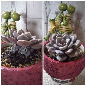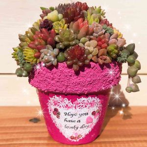 明日は、大好きな会社の先輩のお誕生日🎂を兼ねた女だらけの焼肉大会☺️ みんなで用意したプレゼント🎁に添えてもらおうと思って容舞后さんの鉢に寄せました✨✨ すると、水道の検針の方が「いつも見せてもらってます。可愛いですね☺️」と声をかけてくれ・・ 最近、多肉を集め始めているとの事。 でも育て方が分からない〜と言っていたので、私の分かる事はお伝えして、気分が良くなってしまい、七福神とパープルヘイズとドルフィンちゃんをおすそ分けしました😊 ここを見ると、たくさん色んなのが見れますよ💕って、GSも教えておきました😆 と〜っても喜んでくれて、私もとっても嬉しくて✨ しばらくすると、今度は宅急便のお仕事を終えて帰る途中の女性が、「いつも、通りかかって見せてもらってます」とまた声をかけてくれて・・ この方は、自転車ですぅ〜っと行かれたので、お礼だけ伝えましたが、今日は何だかとってもいい気分になりました(๑˃̵ᴗ˂̵) 知らない人とでも、スッと会話が生まれて、植物ってすごいですね〜(*´꒳`*)